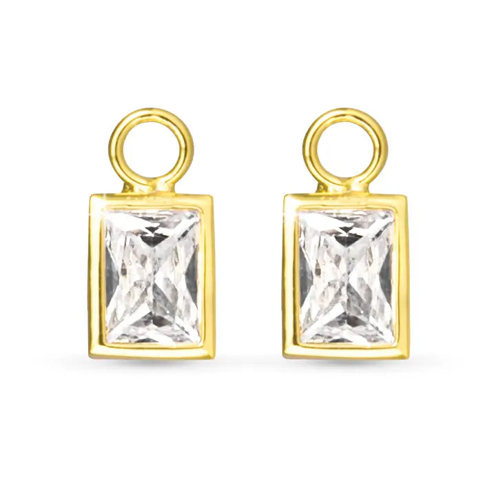 The Gold CZ Add A Charm Hoop Earrings are fun 18K Gold Dipped hoops perfect to pair with Blu Charms! Blu Charms come in an assortment of colors and styles. Perfect to mix & match and have fun with your jewelry and expressing yourself!