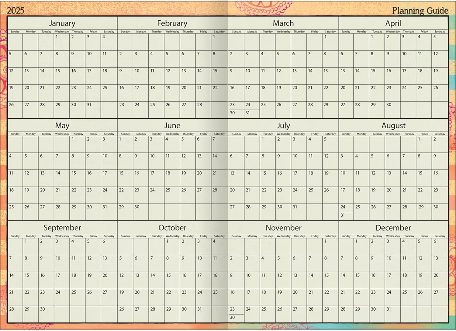 The Color My World 2025 Monthly Planner features Lisa Kaus' whimsical artwork of color and imagination decorating each month of the year. LANG Mini Wall Calendars are made with elegant linen embossed paper stock in a space-efficient format.