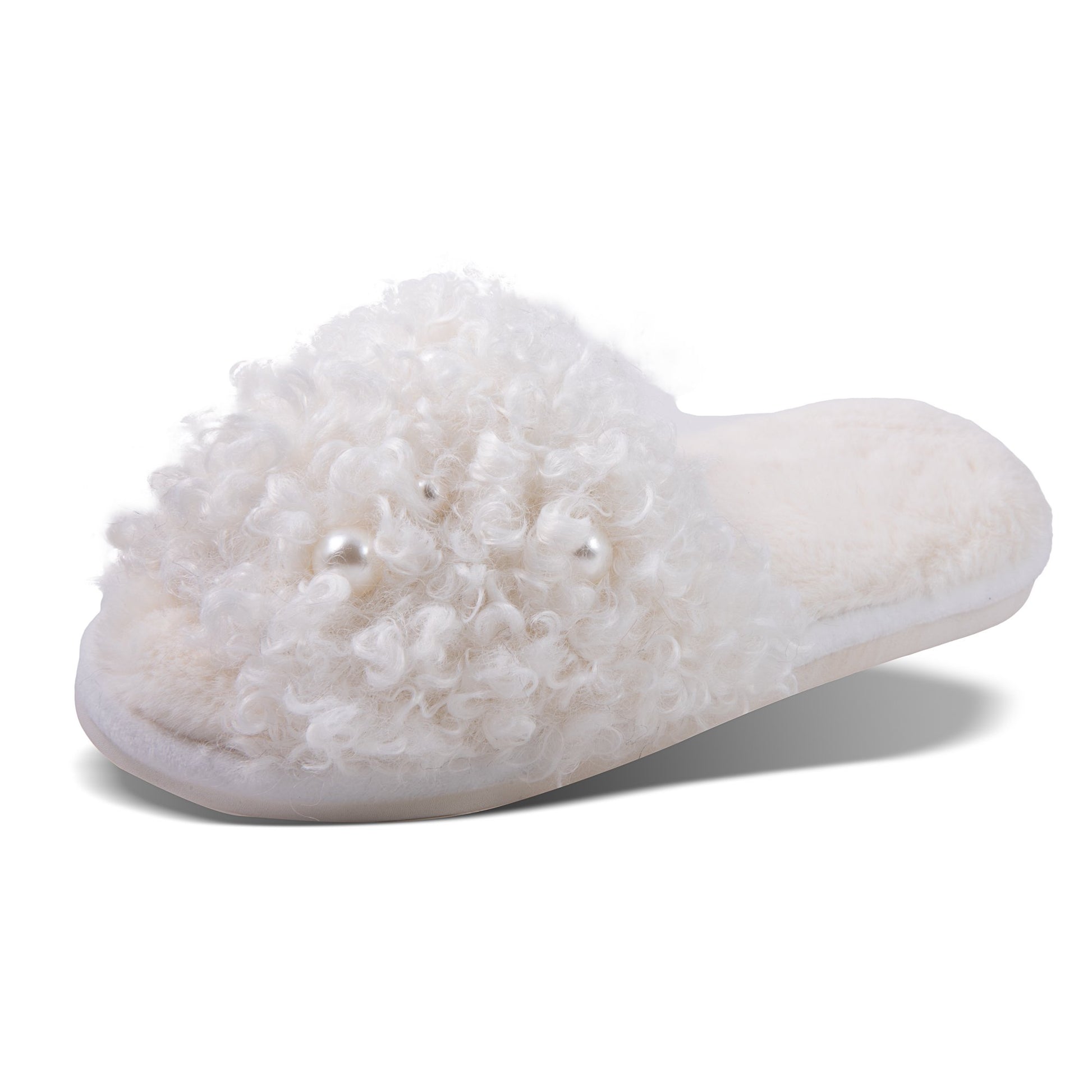 Experience comfort and style with the Amanda Blu pearl slippers. These white slippers feature a luxurious, curly pearl design, perfect for lounging at home. Available in three sizes: Small (6/7), Medium (8/9), and Large (10/11), they cater to various foot sizes. The pearl slippers by Amanda Blu provide a cozy fit with their soft and plush material. Perfect for everyday wear, these slippers add elegance to your loungewear. Enjoy comfort and sophistication with Amanda Blu pearl slippers.