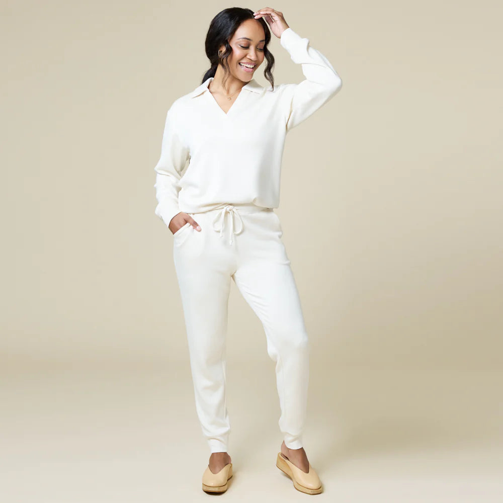 Work messages: off. DreamTech Johnny CollarJogger Set: on. This on-trend set is the closet essential for the modern woman. Seamlessly go from the comfort of your home to the hustle of the airport without the need for an outfit change.
