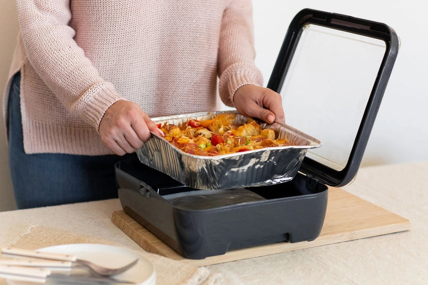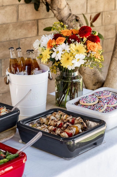 Fancy Panz are used to dress up, protect and serve from a foil pan. Perfect for tailgating, potlucks, picnics, holidays and more! Our premium pans are sized to accommodate the included hot/cold gel pack so food can be kept at the desired temperature without the use of bulky chaffing dishes.