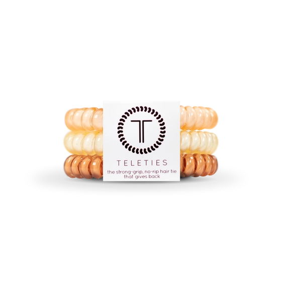 Hold your hair and enhance your style with TELETIES. The strong grip, no rip hair tie that doubles as a bracelet. Strong, pretty and stylish, TELETIES are designed to withstand everyday demands while taking your look to the next level.