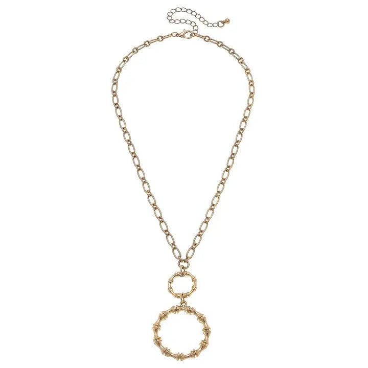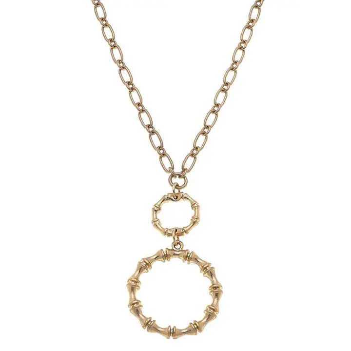 Introducing the Jenny Bamboo Pendant Necklace, our fabulous bamboo-shaped pendant necklace in worn gold! Show off your style with this unique piece that stands out from the crowd and will have everyone turning their heads when you enter the room. This bold and beautiful addition to your jewelry collection will take any outfit to the next level!