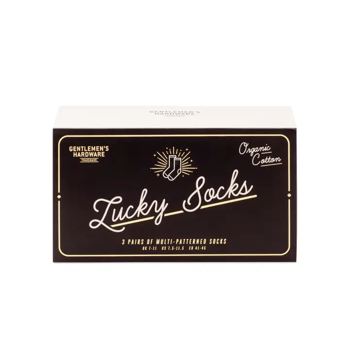 Set of three pairs of socks features a different lucky icon from around the world that we hope will bring you good fortune and success. Made from organic cotton. US 7.5 - 11.5