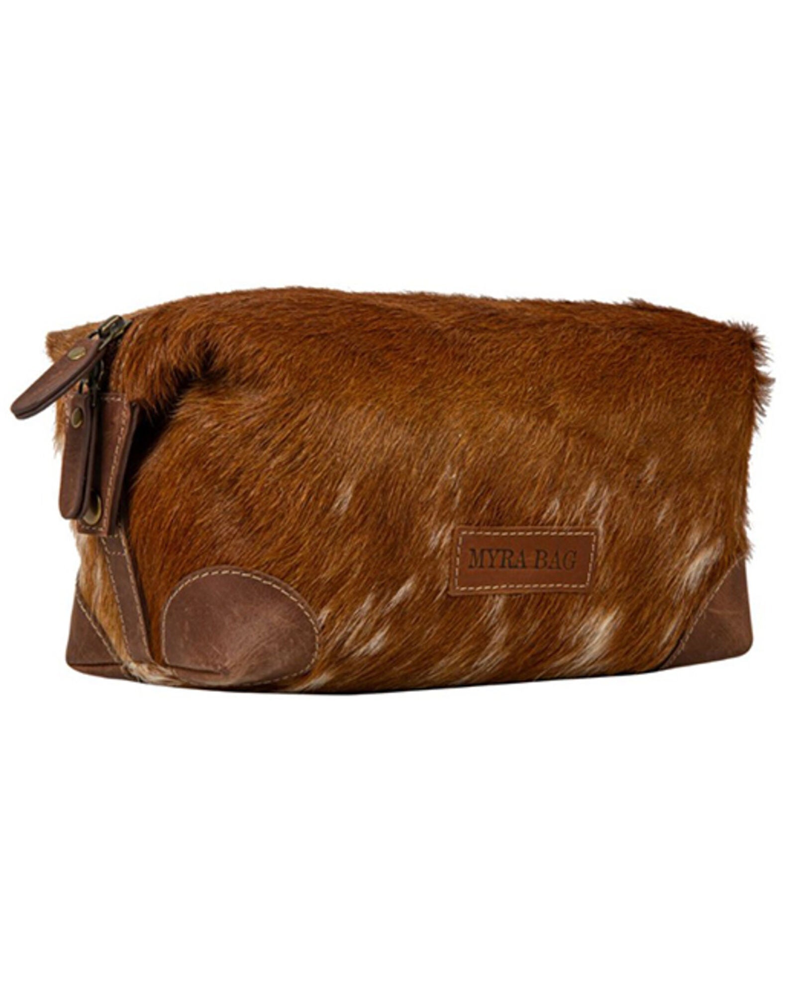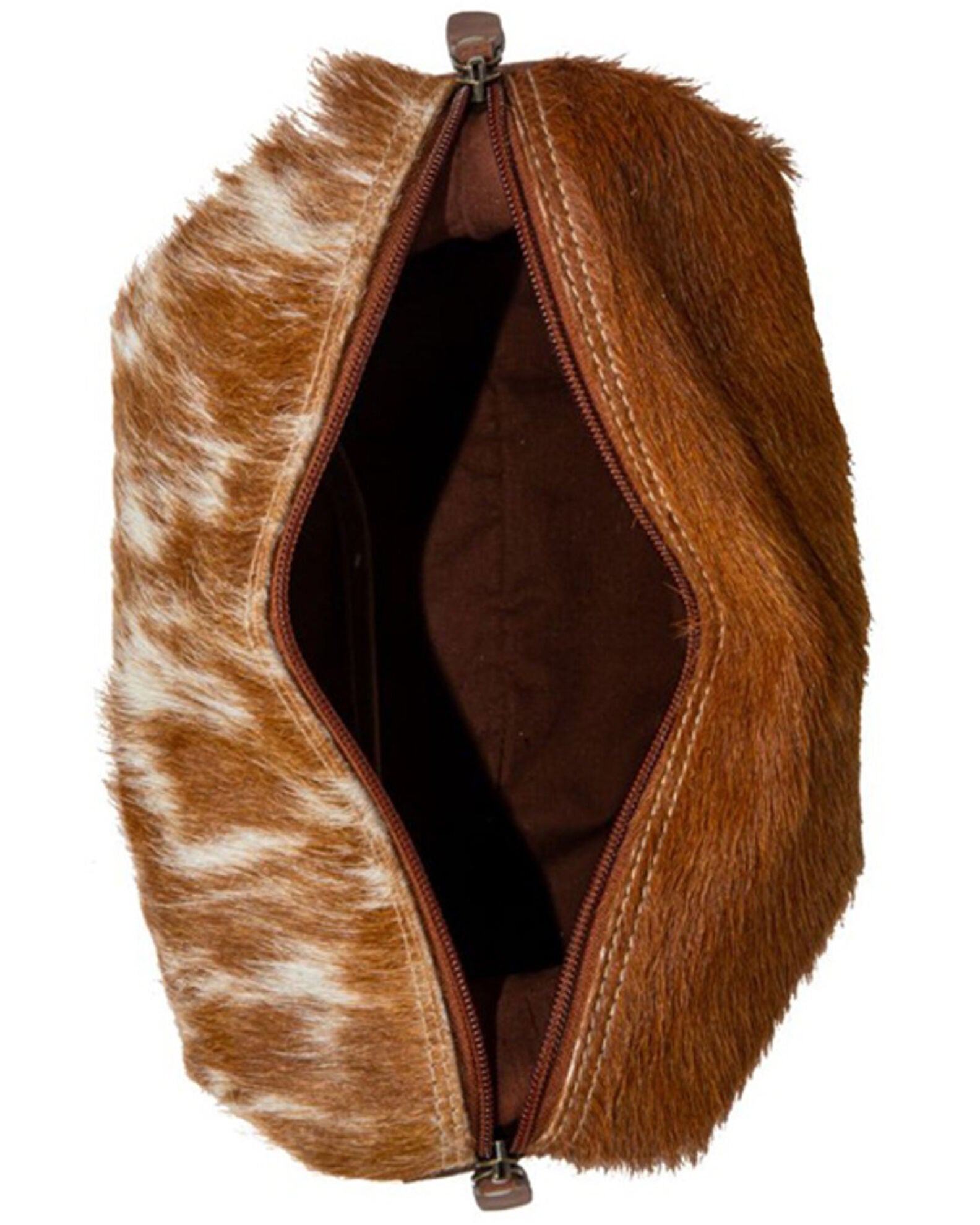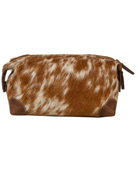 Gorgeous hair-on hide gives this beautiful toiletries bag its grand style. Leather corner leather accents, a roomy interior, and zipper-close top complete this beautiful and functional bag. A certainly stylish accessory!