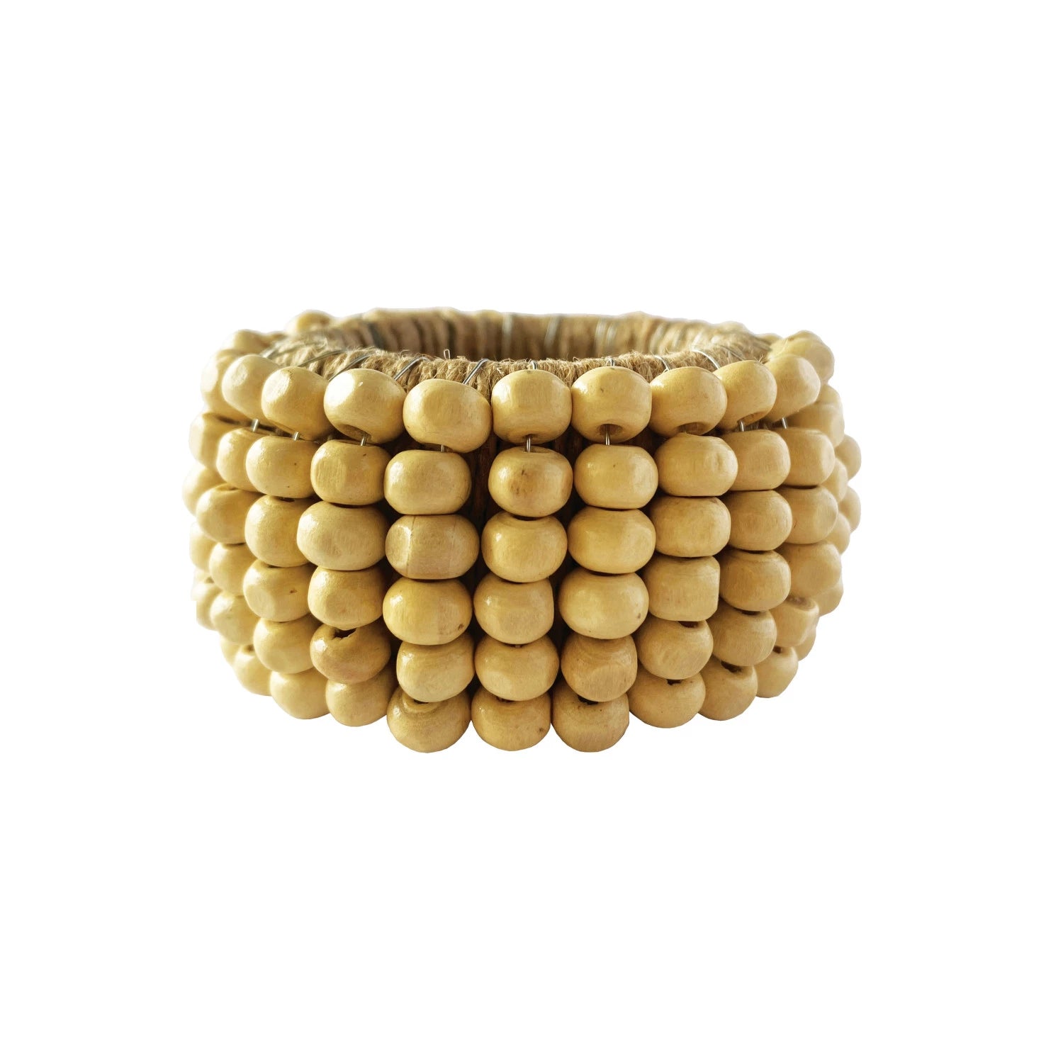 Mango Wood Bead & Jute Napkin Rings, Set of 4