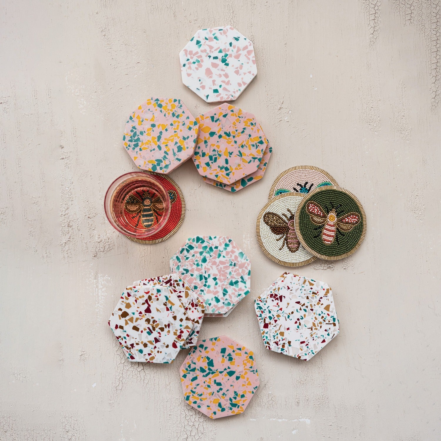 Octagon Resin Coasters, Terazzo Finish