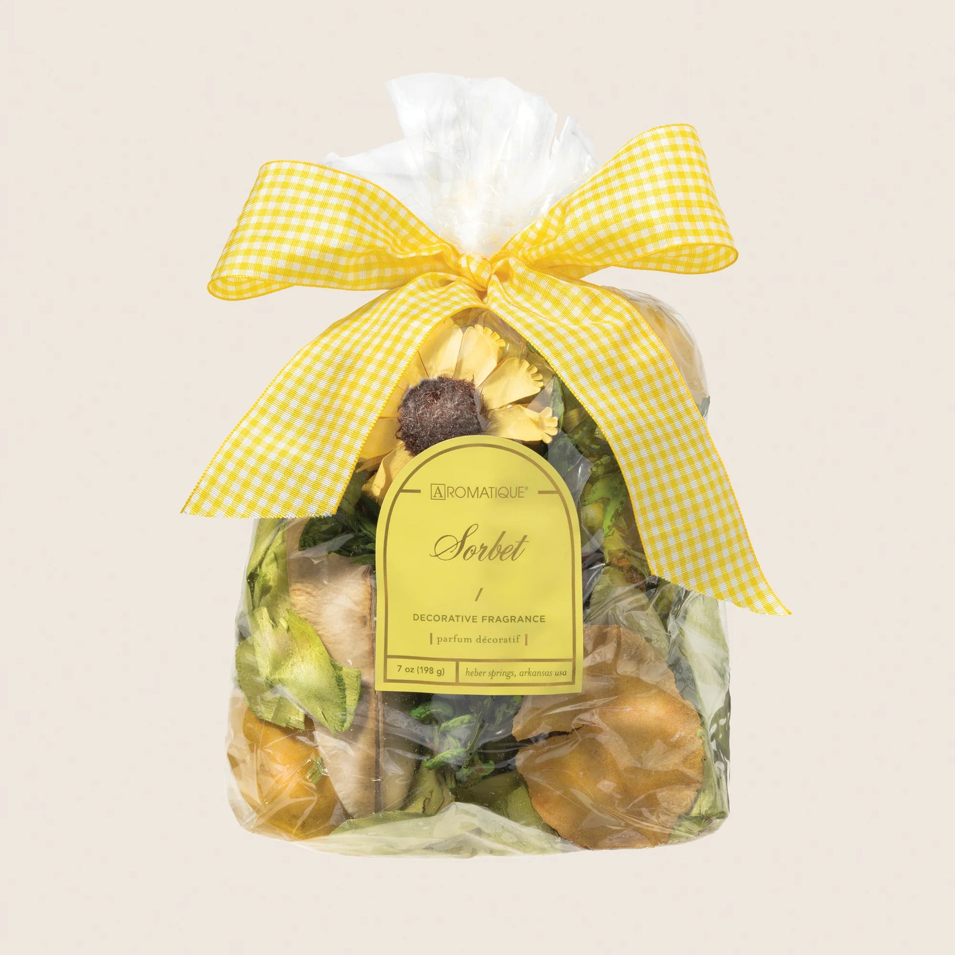 Sorbet Decorative Fragrance is the ideal fragrance in any space. The Standard Bag is our iconic Decorative Fragrance style. Using coco flowers, palm petals, and arjun pods, this decorative fragrance creates a sophisticated touch to any space. Sorbet fills any space with lemon and lime entwined with peach, melon, and rose.