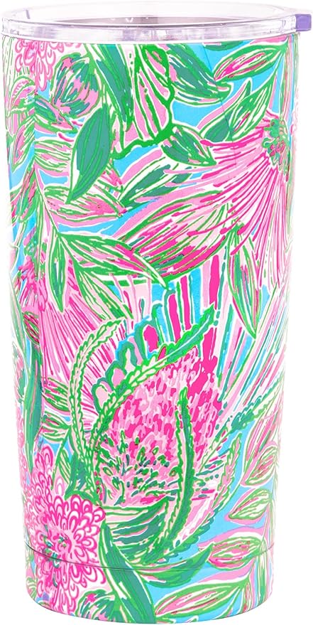 - Quality Design: This insulated cup is featured in the colorful Lilly Pulitzer print, Coming in Hot, with a solid plastic lid. Complete with non-toxic materials and stainless steel double wall insulation, this tumbler is the perfect travel companion for coffee, smoothies, tea, and more!