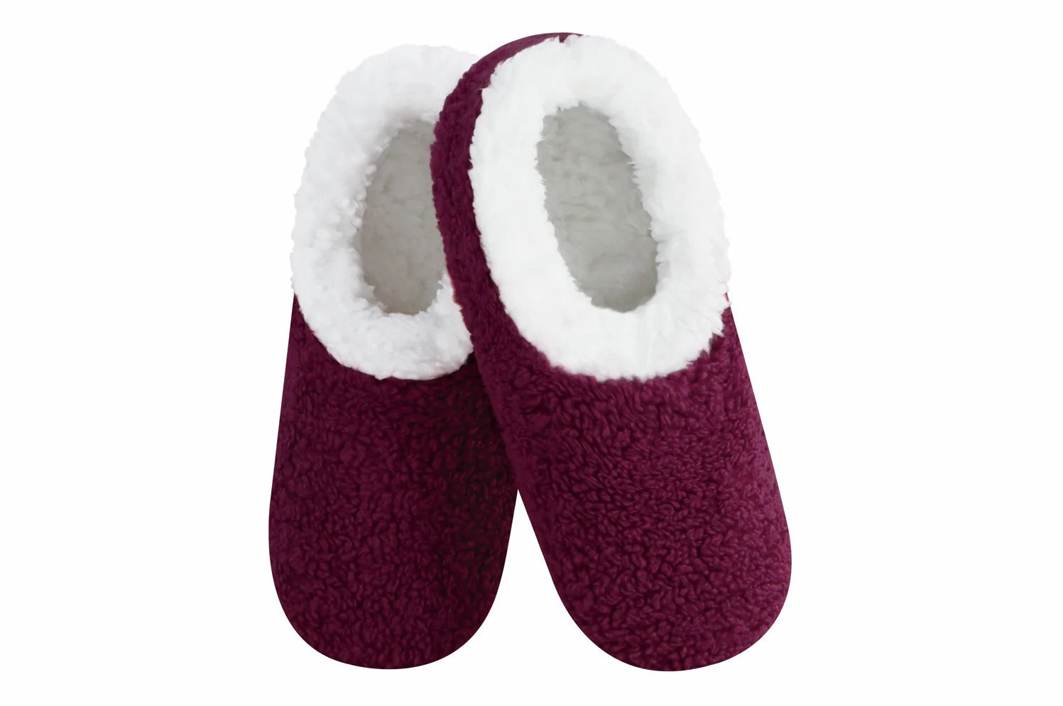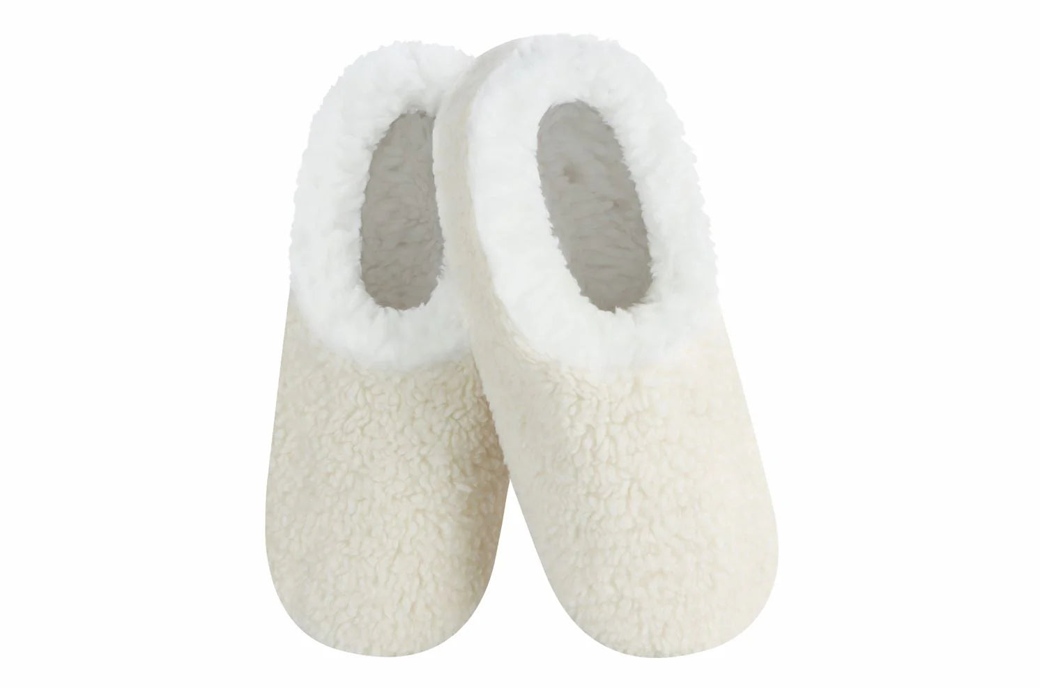 Snoozies are not a sock and not a slipper, it is a cross between the two, making them a foot covering or Footie! Made of 100% Polyester. Snoozies include soft fleece lining inside, overall print on the outside, and a non-skid sole on the bottom.